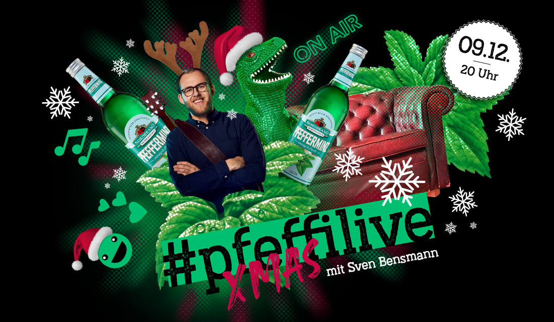 #pfeffilive is back – und dieses Mal wird’s richtig weihnachtlich. Am 09.12., ab 20 Uhr heißt es bei uns: “Jetzt haben wir die minzig grüne Bescherung!”
